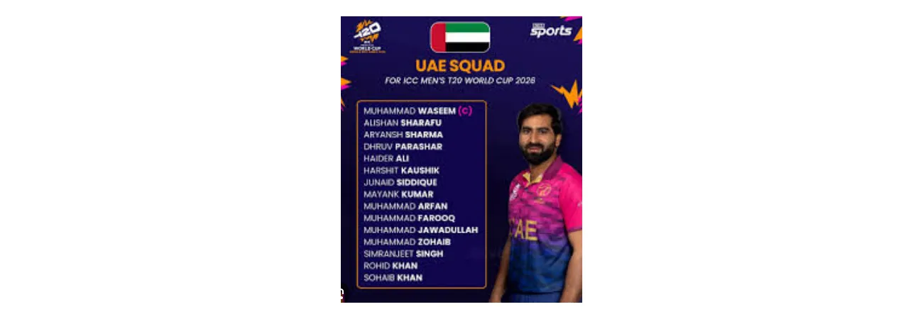 The UAE have previously featured twice in the T20 World Cup, exiting at the group stage in 2014 and 2022. Ahead of the tournament, they will play a two-match T20I series against Ireland, followed by warm-up matches against Nepal on February 3 and Italy on February 6. Their World Cup campaign begins against New Zealand on February 10 in Chennai, with Group D fixtures also including Canada, Afghanistan, and South Africa.