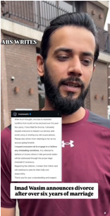 Around two months ago, Imad had shared that he filed for divorce from his first wife due to repeated conflicts that could not be resolved despite years of effort. At that time, he requested the public to respect his privacy and avoid sharing old couple pictures.