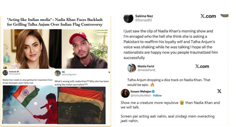 Talha had appeared on her show to clarify a recent controversy but throughout the interview, Nadia Khan repeatedly questioned his patriotism and asked overly sarcastic, pointed questions. He tried to explain the situation that during a concert in Nepal, a fan handed him an Indian flag, and he briefly held it as a gesture of love and support—not politics.