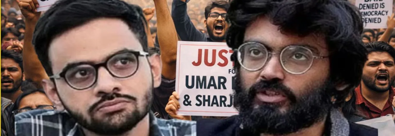JNU students protest bail denial to Umar Khalid, Sharjeel Imam