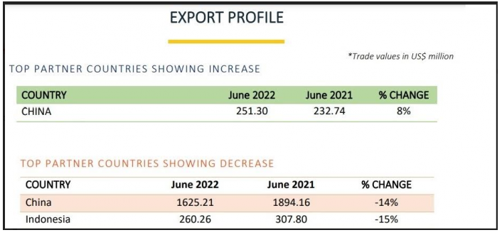 Regarding imports, China is one of the top partner countries which shows a decrease during June as compared to the corresponding month of the previous fiscal year.