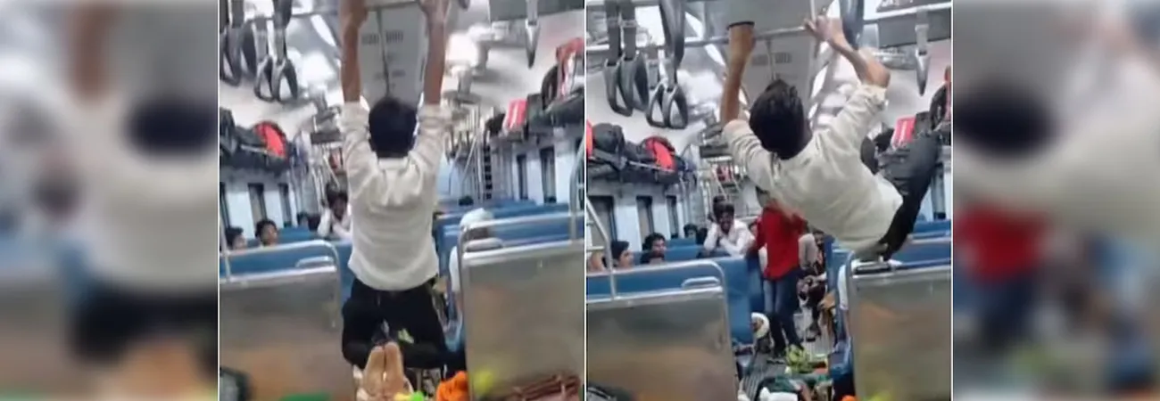 بھارت ،کھچا کھچ بھری ٹرین میں واش روم جانے کیلیے شہری اسپائیڈرمین بن گیا، ویڈیو وائرل