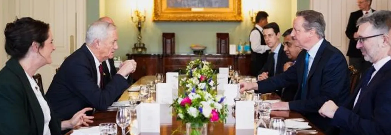 برطانوی وزیر خارجہ ڈیوڈ کیمرون کی اسرائیلی جنگی کونسل کے رکن بینی گینٹز سے ملاقات' غزہ کی صورتحال پر تشویش کا اظہار