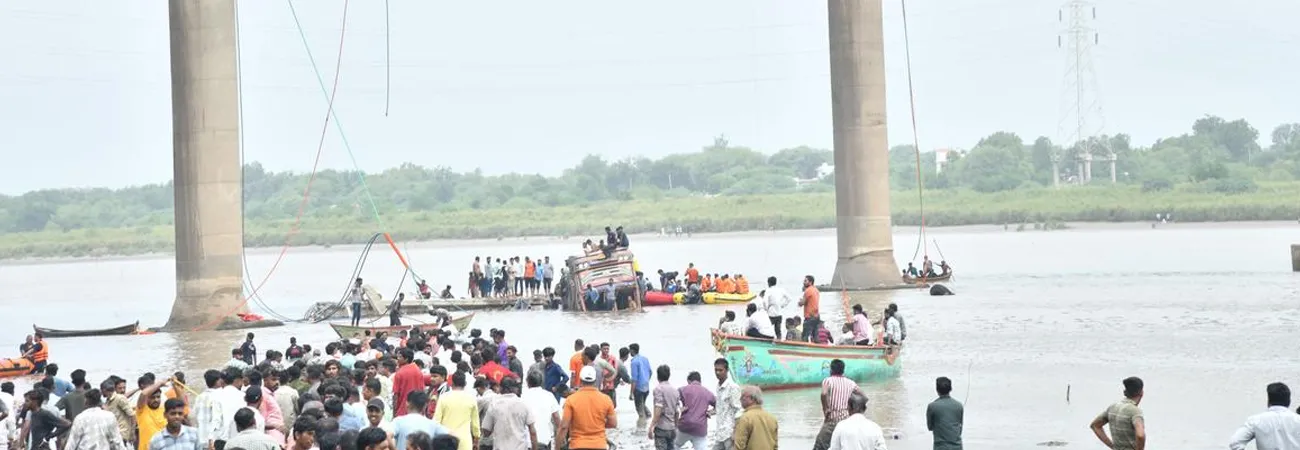 بھارت، گجرات میں پل کا حصہ گرنے سے گاڑیاں دریا میں جاگریں، 10 افراد ہلاک
