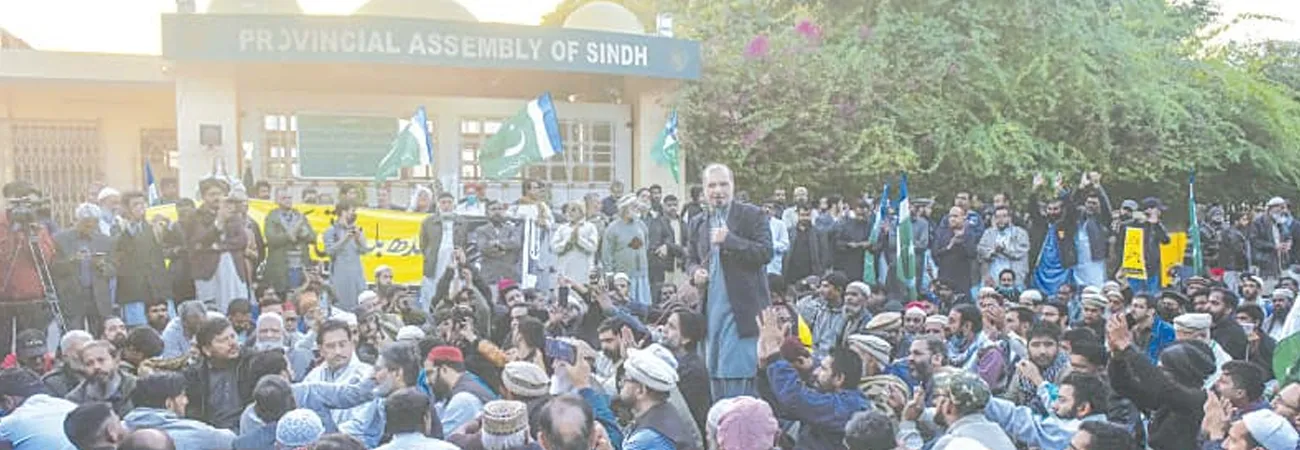 سندھ اسمبلی کے باہر احتجاج، قومی عوامی تحریک کے 10 کارکنان زیر حراست