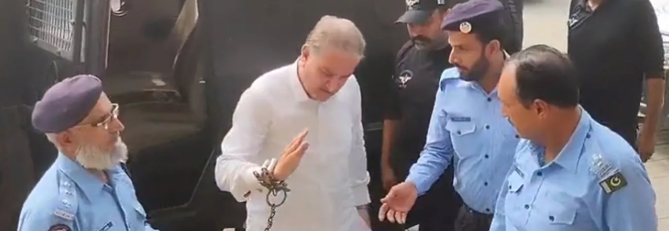 شاہ محمود قریشی کو ہتھکڑی لگا کر جوڈیشل کمپلیکس پہنچا یا گیا