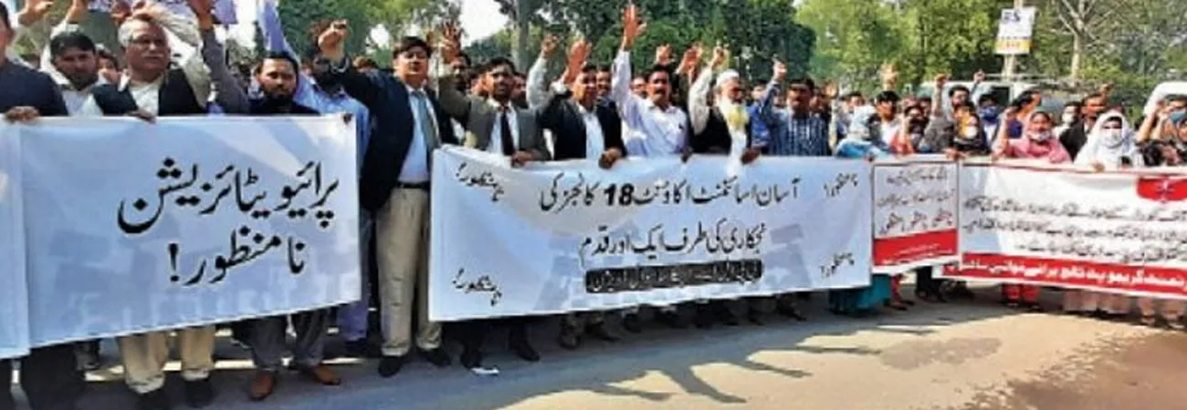 اساتذہ کا لیو انکیشمنٹ پالیسی اور اسکولوں کی نجکاری کیخلاف احتجاج جاری