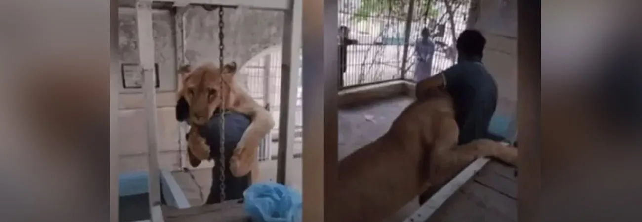 شارع فیصل سے پکڑا جانے والا شیر چڑیا گھر میں اپنے مالک سے لپٹ گیا،ویڈیو سوشل میڈیا پر وائرل