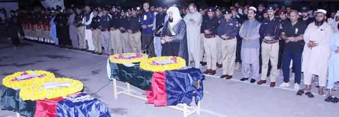 پشاور خودکش دھماکہ میں شہید ایس آئی لئیق زادہ خان، کانسٹیبل عالم زیب کی نماز جنازہ ادا