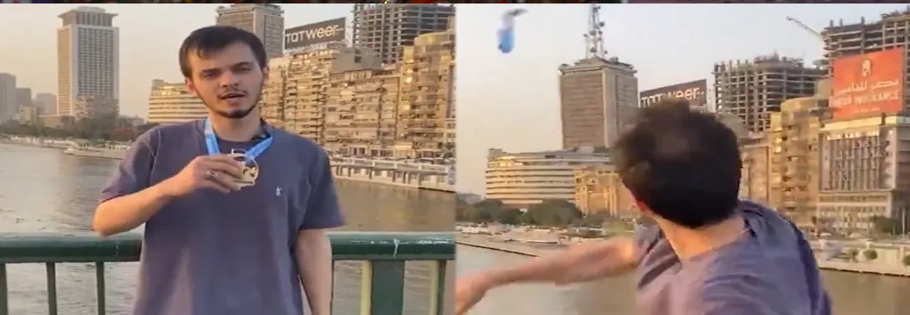 اسرائیلی مظالم کیخلاف احتجاج، ترک کنگ فو چیمپئن نے اپنا طلائی تمغہ دریائے نیل میں پھینک دیا