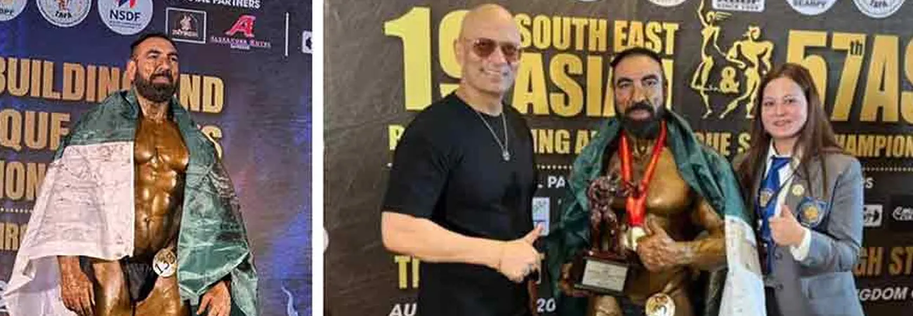 57 ویں ایشین باڈی بلڈنگ مقابلے جیتے والے تن سازوں کا وطن واپسی پر ایئرپورٹ پر شانداراستقبال