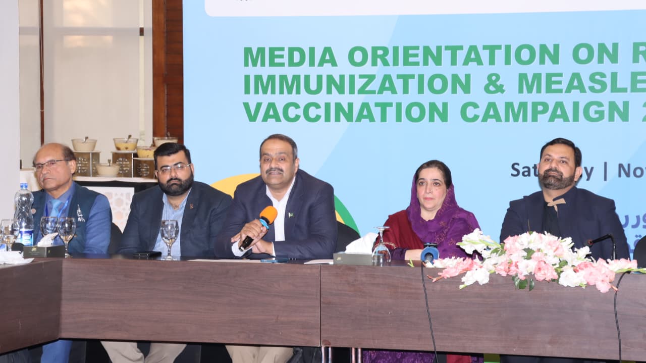 حکومت پنجاب کے توسیعی پروگرام برائے حفاظتی ٹیکہ جات (ای پی آئی) پنجاب نے یونیسیف کے تعاون سے بچوں کے حفاظتی ٹیکہ جات اور خسرہ و روبیلا (ایم آر) ویکسینیشن مہم کے حوالے سے میڈیا ورکشاپ کا انعقاد مقامی ہوٹل میں کیا گیا ۔ اس سیشن کا مقصد میڈیا نمائندگان کو حفاظتی ٹیکہ جات کی اہمیت اور آئندہ ایم آر مہم کے بارے میں آگاہی فراہم کرنا اور عوامی شعور بیدار کرنے میں ان کے کردار کو اجاگر کرنا تھا۔ میڈیا ورکشاپ کی صدارت ڈائریکٹر ای پی آئی پنجاب ڈاکٹر ثمرہ خرم نے کی جبکہ اس موقع پر ڈسٹرکٹ ہیلتھ اتھارٹی راولپنڈی ڈاکٹر احسان غنی بھی موجود تھے ۔ دیگر نمایاں مقررین میں ڈاکٹر خرم مبین خان (امیونائزیشن آفیسر، یونیسیف)، ڈاکٹر جواد (ڈی ایچ او پی ایس راولپنڈی )، ڈاکٹر آصف علی(ڈویژنل آفیسر، ڈبلیو ایچ او)، عقیل سرفراز (ایس بی سی کنسلٹنٹ، یونیسیف) شامل تھے۔