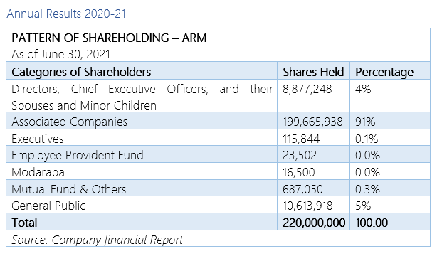 As of June 30, 2021, directors, chief executive officers and their spouses and minor children owned 4% of the company’s shares, associated companies owned 91%, executives 0.1%, mutual fund & others 0.3%, and general public 5%.