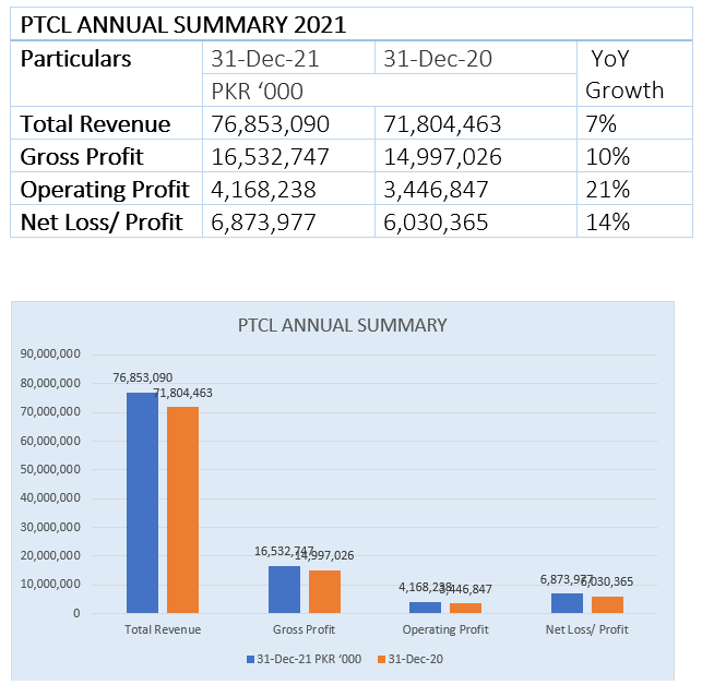 PTCL reported an operating profit of Rs4.2 billion in 2021, an increase of 21% year-on-year, and a net profit of Rs6.9 billion, 14% higher than the previous year. The company managed to achieve growth, despite the difficult economic conditions brought on by inflation, the depreciation of Pakistani rupee versus the US dollar, the increase in electricity prices, and other factors.