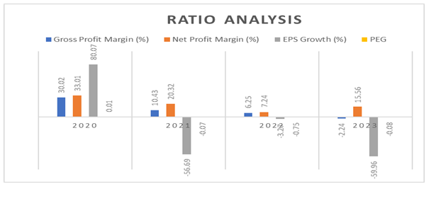 The company’s EPS growth remained negative in 2021, 2022 and 2023 with values of 56.69%, 3.27%, and 59.96%, respectively. However, the company observed positive EPS growth of 80.07% in 2020. A similar trend was followed by price/earnings-to-growth, with a positive value of 0.01 in 2020 and negative values of 0.07 in 2021, 0.75 in 2022, and 0.08 in 2023.