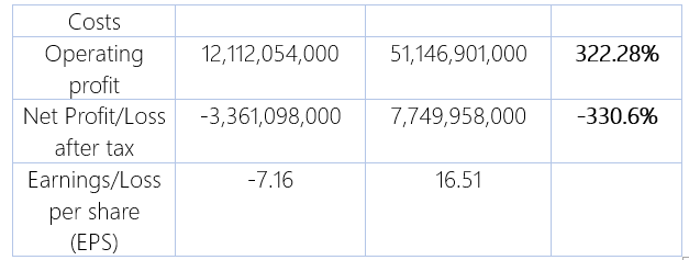 Likewise, an exponential surge of 377.63% in gross profit was registered during the review period. The operating costs expanded to Rs15.18 billion in 1HFY24, showcasing an increase of 67.65%. Thus, the company earned a hefty amount of Rs51.14 billion as operating profit, 322.28% higher than the Rs12.11 billion in 1HFY23.