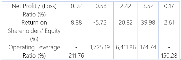 The company's gross profit remained volatile over the years, starting from 3.12% in 2019. It reduced to 1.10% in 2020 before reaching a peak of 6.57% in 2022. However, in 2023, it slipped to 2.21% due to an unfavourable price regime and a decrease in the sales volumes of the overall sector. The net profit fluctuated over the period, as the company witnessed a net loss ratio of 0.58% in 2020, resulting from the economic implications of COVID-19, and the highest net profit of 3.52% in 2022. A similar trend was followed by the returns of shareholders equity ratio as it ranged between negative returns of shareholders equity of 5.72% in 2020, and the maximum return of 39.98% in 2022.