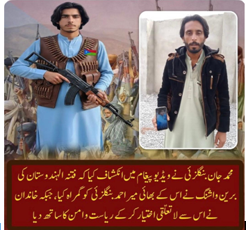 Recently, a video emerged showing Mir Ahmed Bangulzai armed with a gun and ammunition. His brother, Muhammad Jan Bangulzai, later stated that Mir Ahmed had been missing for some time and was misled and recruited by Fitna-e-Hindustan into his organization and that neither he nor the family had any connection to his actions. His pictures are now being circulated widely on social media, presented as “proof” once again that the issue of missing persons is nothing more than Indian propaganda, and that those who leave their homes do so entirely of their own free will.