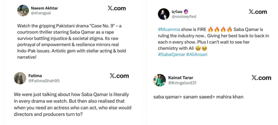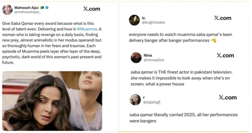 In Pamal, every single scene featuring Saba was widely appreciated, with audiences praising her consistency and emotional depth. And as soon as Muamma went on air, it was flooded with overwhelming admiration and positive reactions.