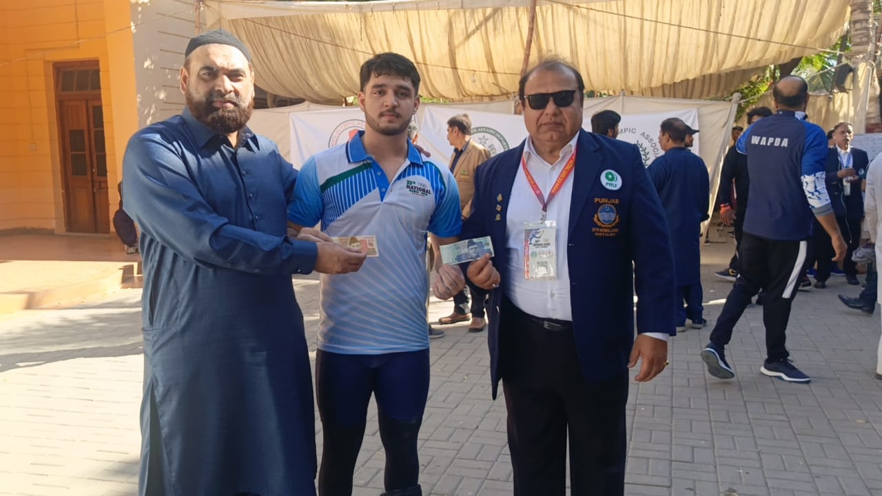 ڈی جی پنجاب سپورٹس بورڈ حضر افضال چوہدری، صدر جبران سلمان ،سیکرڑی پنجاب عقیل جاوید بٹ, راشد ندیم بٹ کی پنجاب کے ویٹ لفٹر فرقان احمد کو 88کلو کلاس میں نیشنل گیمز کراچی میں گولڈ میڈل جیتنے پر دلی مبارک باد۔۔۔ فوکل پرسن سہیل جاوید بٹ کے مطابق گوجرانوالہ کےفرقان احمد نے سنیچ میں 144کلو اور کلین اینڈ جرک میں 171کلو ٹوٹل 315 کلو وزن اٹھا کر مدمقابل آٹھ ویٹ لفٹروں کو شکست فاش دے کر پنجاب کا نام روشن کیا ۔پاکستان آرمی کے عبد الرزاق نے ٹوٹل 308 کلو وزن اٹھا کر سلور میڈل جیتا جبکہ واپڈا کے حیدر علی نے ٹوٹل 292کلو وزن اٹھا کر براؤنز میڈل جیتا ۔
