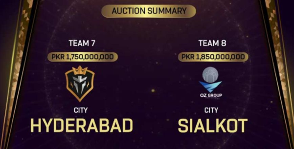 At the beginning of the event, nine bidding groups were introduced, competing for franchises representing six shortlisted cities. The Pakistan Cricket Board set the starting price at Rs110 crore, with each new bid required to increase by at least Rs1 crore. The bidding pool was slightly reduced after Ali Tareen, the former owner of Multan Sultans, withdrew shortly before the auction began.