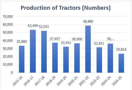 However, the sharp drops in 2022-23 and 2024-25, followed by a limited recovery in 2023-24, indicates that the industry still faces challenges. The government has taken several steps to promote farm mechanization and attract investment in the industry.