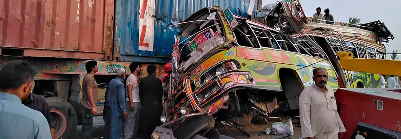 Six people, including a bus hostess, were killed and 14 others wounded in two road accidents on M4 Motorway in Khanewal and Talagang. The first accident took place near Makhdoom Interchange on Motorway M4, where a bus collided with a trailer when its driver fell asleep while driving, killing the bus hostess on the spot and injuring 14 other passengers.