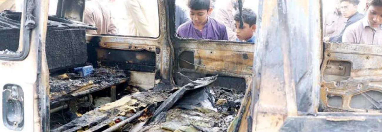 Eight children received serious burn wounds when a school van caught fire in Karachi on Monday morning. The police said that the incident occurred due to overheating of the vehicle’s engine. Soon after receiving the report, Rescue and police teams rushed to the spot and shifted the injured children to Abbasi Shaheed Hospital where condition of two children was said to be serious. A man, his wife, and a child were seriously injured when a water tanker crushed them in Karachi. The accident occurred near Noorani Kabab House on Shahrah-e-Qaideen.