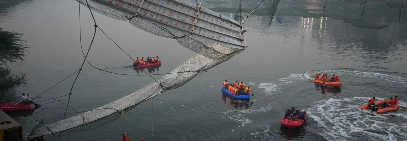 بھارت میں پل گرنے کا واقعہ، پل کی دیکھ بھال کی ذمہ دار کمپنی کے 9 افراد گرفتار