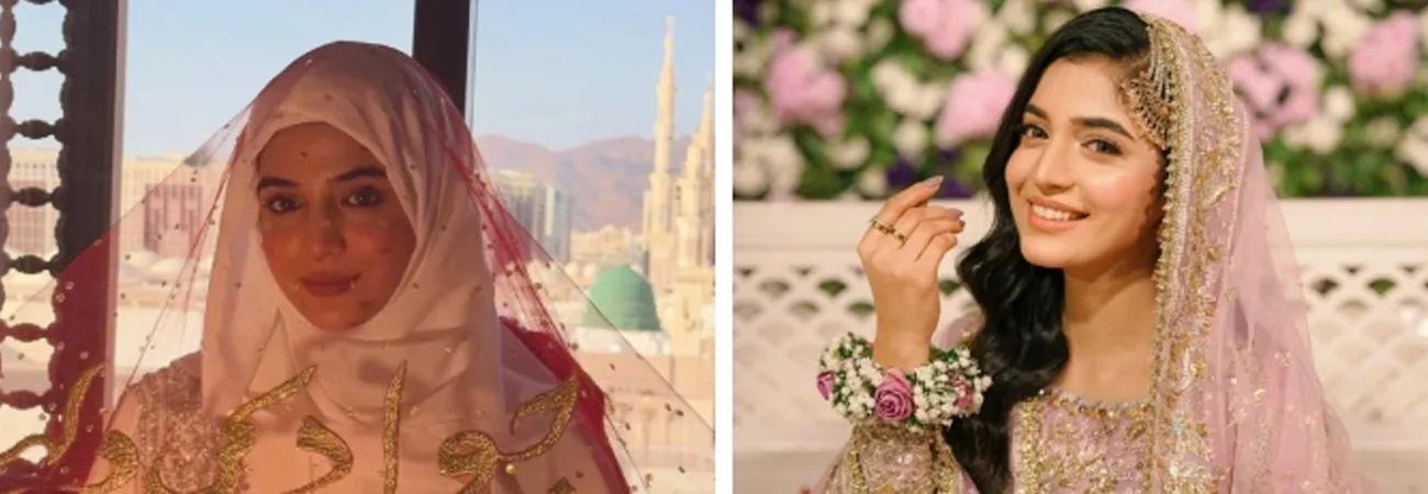 معروف اداکارہ لائبہ خان کی مدینہ منورہ میں نکاح کی تصاویر کے بعد ان کی دعائے خیر کی تصاویر بھی وائرل ہوگئیں۔ گزشتہ روز لائبہ خان نے اپنے نکاح کی تصاویر شیئر کی تھیں جو چند روز قبل مدینہ منورہ میں انجام پایا تھا۔انہوں نے یہ بھی اعلان کیا کہ ان کی شادی کی تقریبات کا باقاعدہ آغاز ہو چکا ہے، جس کی ابتدا دعائے خیر کی تقریب سے ہوئی۔اس موقع پر لائبہ نے ہلکے موو پنک رنگ کا فرش تک لمبا انارکلی زیب تن کیا، جس پر نفیس سنہری اور ٹِلہ ورک کیا گیا تھا۔دلہن کو خوبصورت روایتی سنہری موتیوں کے لاکٹ، جھومر اور جھمکوں سے تیار کیا گیا تھا جب کہ بال کھلے اور ہلکے گھنگھریالے رکھے گئے تھے۔نکاح و دعائے خیر کی تصاویر سامنے آتے ہی مداحوں اور ساتھی فنکاروں کی جانب سے مبارک باد کا سلسلہ شروع ہو گیا ہے۔