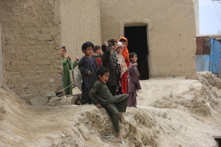 افغانستان، دارالحکومت کابل کے اندرونی بے گھر افراد کے ایک کیمپ میں افغان بچوں کو دیکھاجاسکتا ہے۔ (شِنہوا)