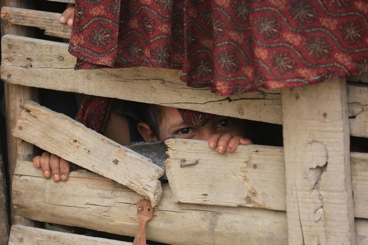 افغانستان، دارالحکومت کابل کے اندرونی بے گھر افراد کے ایک کیمپ میں ایک افغان بچی کو دیکھا جاسکتا ہے۔ (شِنہوا)