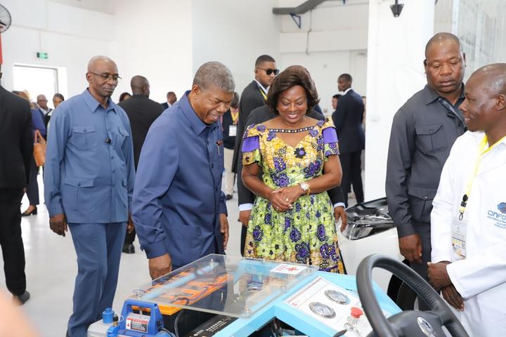 انگولاکے صوبے ہوام بو کے شہر ہوام بو میں انگولا کے صدر جواؤ لورینکو (دوسرے بائیں ، سامنے) چینی حکومت کے عطیہ کردہ پیشہ ورانہ تربیتی مرکز کا دورہ کررہے ہیں۔ (شِنہوا)