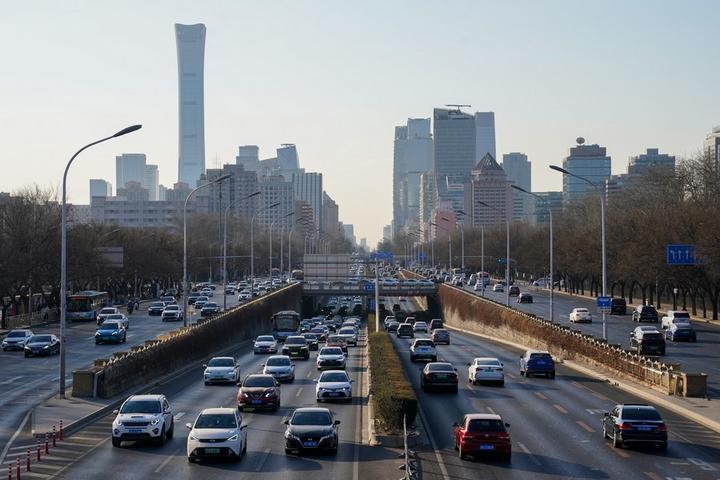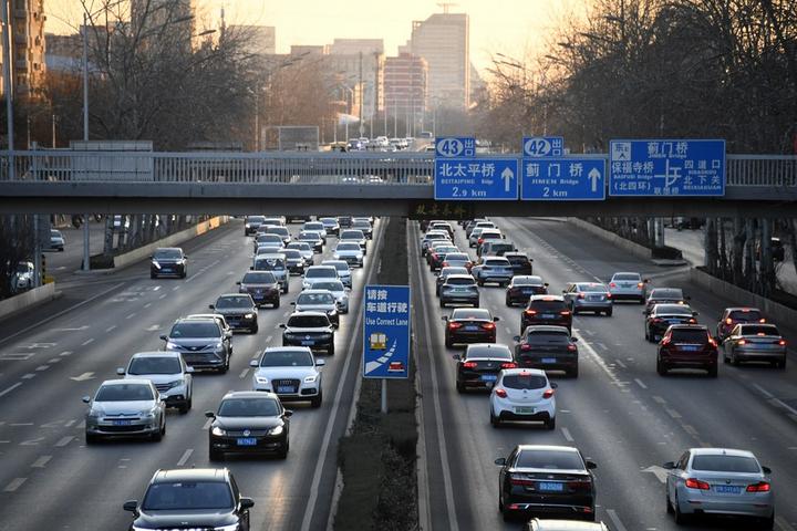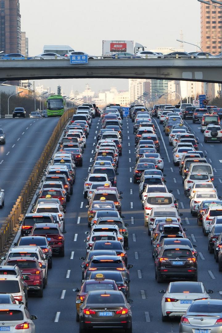 چین، دارالحکومت بیجنگ میں صبح رش کے وقت ضلع چھاؤیانگ کے مشرقی تیسرے رنگ روڈ پر گاڑیاں رواں دواں ہیں۔ (شِںہوا)