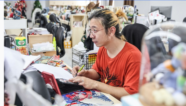 چین، جنوبی صوبہ ہائی نان کے شہر ہائیکو کے قصبے لونگ چھیاؤ کے دیہات چھانگ شوئے کے ایک اینی میشن انکیوبیشن مرکز میں کارٹونسٹ لیو کی کام کررہا ہے ۔ (شِنہوا)