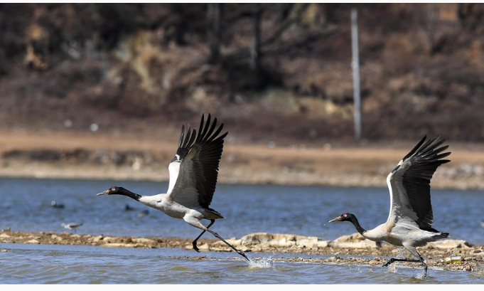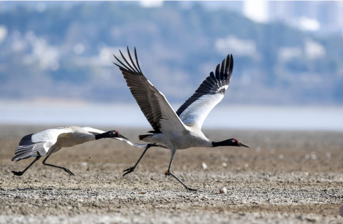 چین، جنوب مغربی صوبہ گوئی ژو کے شہر وے ننگ کی ہوئی اور میاؤ خوداختیار کاؤنٹی کے علاقے یی میں واقع کاؤ ہائی قومی قدرتی افزائش گاہ میں سیاہ گردن والے سارس دیکھے جاسکتے ہیں۔(شِنہوا)