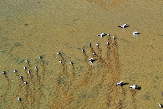 چین، جنوب مغربی صوبہ گوئی ژو کے شہر وے ننگ کی ہوئی اور میاؤ خوداختیار کاؤنٹی کے علاقے یی میں واقع کاؤ ہائی قومی قدرتی افزائش گاہ میں مہاجر پرندوں کو چارہ کھاتے دیکھا جاسکتا ہے ۔ (شِنہوا)