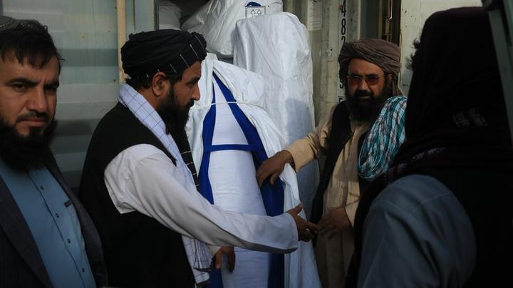 افغانستان، مغربی صوبے ہرات میں حکام زلزلہ زدگان کے لئے چین کا عطیہ کردہ امدادی سامان اتاررہے ہیں۔ (شِنہوا)