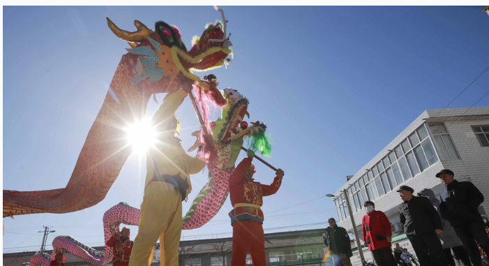 چین، مشرقی صوبہ شان ڈونگ کے شہر تینگ ژو کے ایک چوک میں لا نگ ٹائی ٹو دن کی مناسبت سے لوگ فن کا مظاہرہ کررہے ہیں۔(شِںہوا)