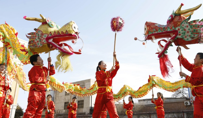 چین ، شمالی صوبہ ہیبے کے شہر شینگ تائی کے ایک پرائمری اسکول میں لا نگ ٹائی ٹو دن کے موقع پر طلبا ڈریگن رقص پیش کررہے ہیں۔(شِںہوا)