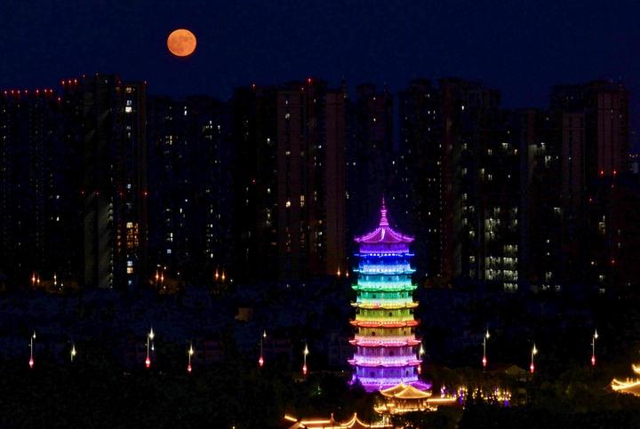 چین میں وسط خزاں تہور کی شب چمکتے مکمل چاند کے مناظر