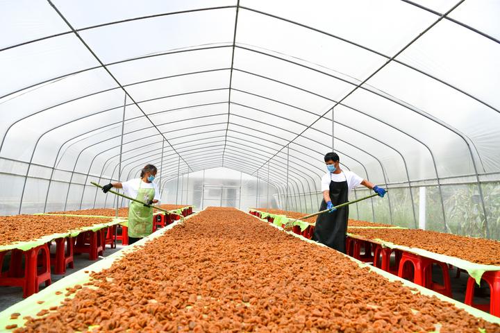 چین کے جنوب مغربی صوبے گوئی ژو کی کاؤنٹی لونگ لی کے قصبے گوجیانگ میں کسان کانٹے کی ناشپاتی خشک کر رہے ہیں۔ (شِںہوا)
