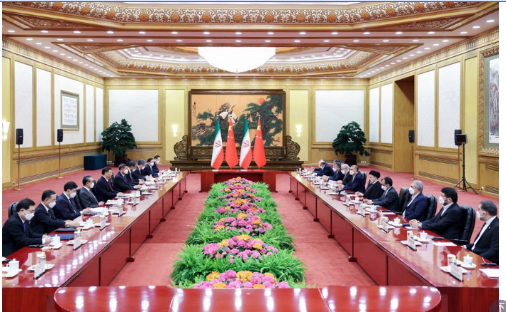 چین، دارالحکومت بیجنگ کے عظیم عوامی ہال میں چین کے صدر شی جن پھنگ اسلامی جمہوریہ ایران کے صدر ابراہیم رئیسی سے بات چیت کررہے ہیں۔ (شِںہوا)