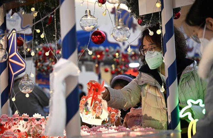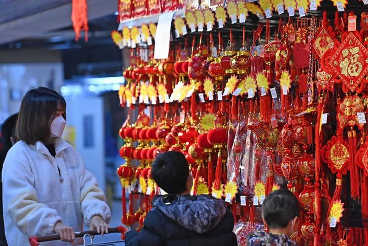 چین ، شمالی تیان جن کی سپرمارکیٹ میں گاہک روایتی سجاوٹ کا سامان خرید رہے ہیں۔(شِنہوا)