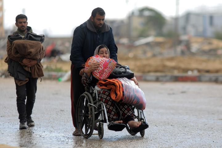 غزہ کی پٹی کے جنوبی شہر خان یونس میں اسرائیل سے انخلاء کے احکامات ملنے کے بعد لوگ اپنے گھر چھوڑ کر جارہے ہیں۔ (شِنہوا)