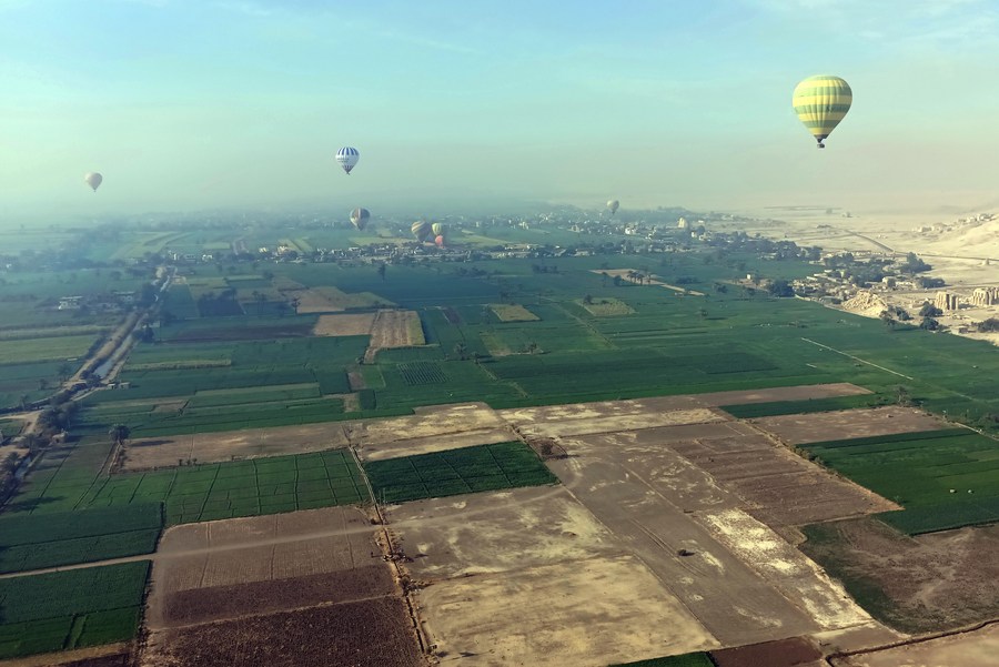 لکسور، مصر (شِںہوا) مصر کے جنوبی شہر لکسور میں سیاح ہاٹ ائیر بیلونز کے ذریعے آسمان کی بلندیوں پر جاتے ہیں اور شہر میں دریائے نیل کے مغربی کنارے پر واقع تمام قدیم یادگاروں کا طائرانہ جائزہ لیتے ہیں۔ ہاٹ ائیر بیلون کی یہ