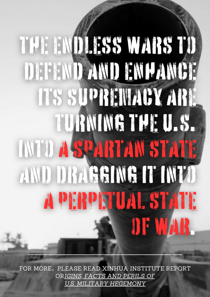 پوسٹر: شنہوا کی رپورٹ "امریکی عسکری اجارہ داری کی بنیادوں، حقائق اور خطرات" کے اہم ترین نکات