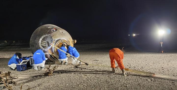 بیجنگ (شِنہوا) انسان بردار خلائی جہاز شین ژو 14 کے 3 خلابازوں چھن ڈونگ ، لیو یانگ اور سائی شوژے کو واپس لانے والا کیپسول چین کے شمالی اندرون منگولیا خوداختیار خطے میں واقع ڈونگ فینگ لینڈنگ مقام پر اترگیا۔