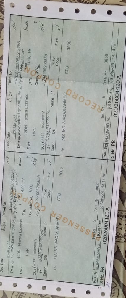 ہزارہ ایکسپریس کا 3ہزار کاٹکٹ 2850میں فروخت کرنے والے غریب مسافر کو عدالت نے 300روپے جرمانہ کرکے رہاکرنے کاحکم دے دیا۔عدالت کے فیصلے کے بعد مسافر کو ریلوے پولیس نے رہاکردیا۔تفصیلات کے مطابق ریلویز پولیس راولپنڈی ڈویژن نے ریلوے اسٹیشن حویلیاں کے مسافر خانے میں 7مئی بروز اتوار کارروائی کرتے ہوۓ ملزم وقاص احمد کو گرفتار کرکے مقدمے کا اندراج کرکیا تھا ہے۔ مسافر کو حویلیاں سے کراچی تک ٹرین ہزارہ ایکسپریس کی ٹکٹ جو 3ہزار میں خریدی تھی دوسرے مسافر کو 2850روپے میں فروخت کی تھی ۔جس پر ریلوے پولیس نے مسافر کو گرفتار کرلیا تھا کیوں کہ اگر مسافر خود سفر نہیں کرنا چاہتا تھا تو اس کو ٹکٹ ریلوے کو واپس کرنی چاہیے تھی جس پر 30فیصد کٹوتی کی جاتی جو کہ 900روپے بنتی تھی مگر غریب مسافر نے اہنے پیسے بچانے کے لیے دوسرے مسافر کوٹکٹ فروخت کردیا ۔پیر کو ریلوے پولیس نے ملزم وقاص احمد کو ریلوے مجسٹریٹ و سینئر سول جج ہری پورمحمد عمر کی عدالت میں پیش کیا جس پر جج نے مسافر کو 300روپے جرمانہ کرتے ہوئے ملزم کو جرمانہ ادا کرنے پر رہاکرنے کاحکم دیا ملزم مسافر نے جرمانہ ادا کیا جس پر ریلوے پولیس نے مسافر کو رہاکردیا ۔(محمداویس)