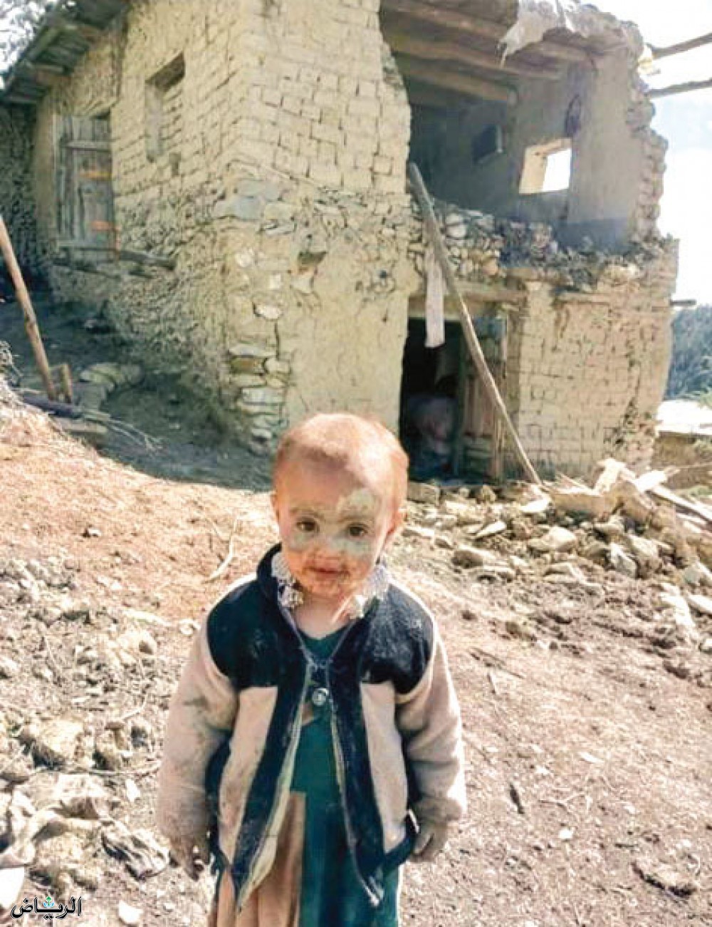 طفل أفغاني أمام منزله المدمر